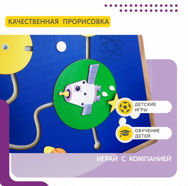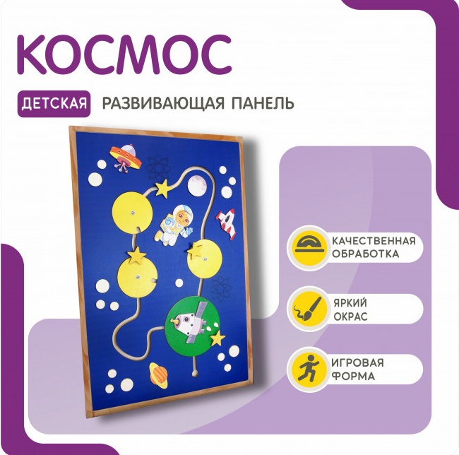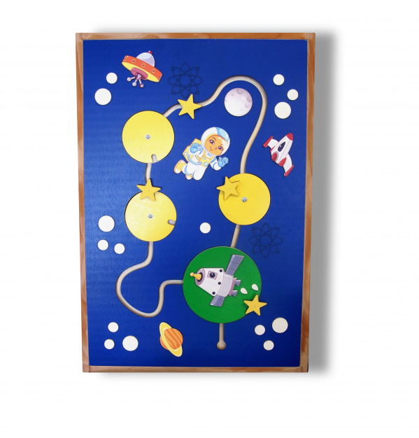Погрузитесь в захватывающий мир космоса вместе с нашей тактильной развивающей панелью! Какой ребенок не мечтает стать космонавтом и отправиться на Луну? Теперь у него есть такая возможность – создавать свои космические корабли, летать по звездам и изучать планеты прямо на домашней игровой площадке. А в процессе игры он будет развивать мелкую моторику, координацию движений и воображение, что несомненно положительно скажется на его будущем.