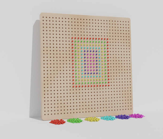 Тактильно-развивающая панель выполнена из безопасных и прочных материалов, на которой расположены отверстия для цветных элементов. Панель выполняет функцию не только украшения детской комнаты, но и развивает детское воображение, мелкую моторику, логику, учит различать цвета. Также яркая панель сочетает в себе высокое качество, исключительную полезность и доступную стоимость.